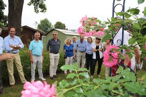 Es wurde uns ein sehr herzlicher und freundschaftlicher Empfang im Rosengarten von Saverne, der Roseraie, bereitet. Mehr als 20 Freunde des LC Saverne waren anwesend und zur Begrüßung wurden uns Rosenkuchen und Rosentee serviert.Danach ging es zu dem etwa 3 km außerhalb Savernes liegenden „Botanischen Garten“, wo wir eine interessante Führung durch die überwiegend heimische Fauna mit einigen importierten botanischen Attraktivitäten erhielten.Zurück in der Roseraie gab es im Pavillon bei Cremant und leckeren „amuse-gueules“ zwei kurze Ansprachen der Clubpräsidenten Catherine Diebolt und Michael Dümeland und die Übergabe einer Spende des LC Mühlackers an den LC Saverne in Gedenken an das im Juli verstorbene Gründungsmitglied des LC Saverne Jean Claude.Beim Hauptgericht, einem ausgezeichneten im Brotteig gebackenen Schinken sowie Salaten, begleitet von hervorragenden Weinen, wurde der rege, freundschaftliche Gedankenaustausch fortgesetzt.Die anschließende Führung durch die Roseraie vermittelte interessante Einblicke in die Rosenhaltung und Rosenzucht.